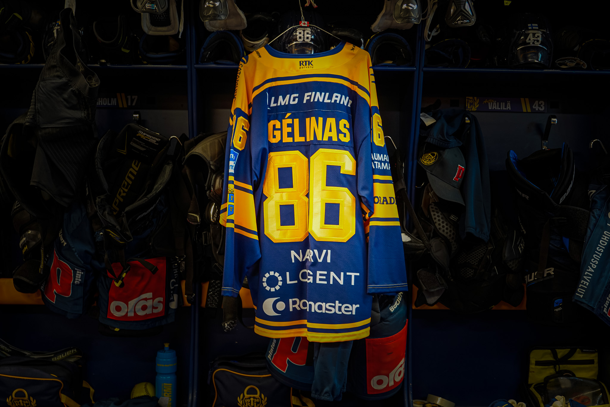 Aidossa pelipaidassa on brodeeratut lehväs, sekä numerot selässä ja hihassa.